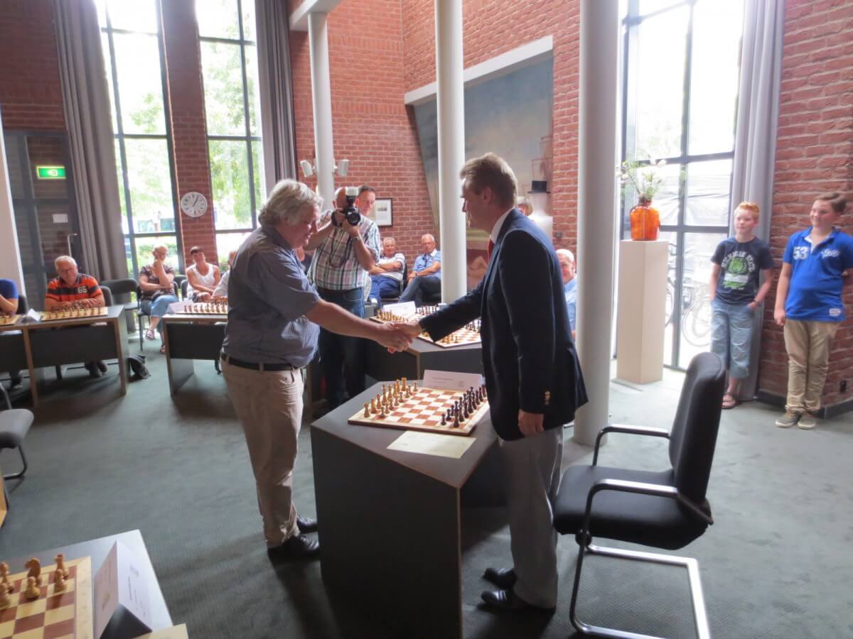 Enkele jaren geleden speelde in dezelfde zaal Jan Timman tegen een groot aantal schaker tijdens de jubileum viering van onze vereniging. Toen nam onze burgemeester het op tegen Jan Timman. Onze burgemeester zal morgenavond ook van de partij zijn.