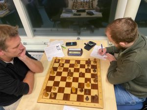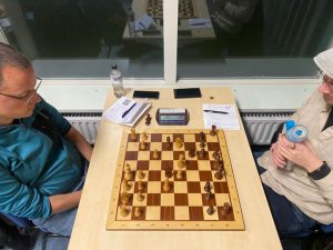 Rik Veldhuis kwam goed uit de opening en forceerde een dubbelpion op de b-lijn van zijn tegenstander. John Leerentveld kwam drie pionnen voor te staan. Het zag er dus niet slecht uit. Op het eerste bord speelde Menno Monsma, die een kwaliteit achter kwam te staan en slechts een pion compensatie daarvoor had.
