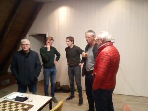 Max Euwe liet zien waarom zij in deze klasse kampioen zijn geworden. Zij vochten zich terug in de wedstrijd. Henk wist nog een degelijke remise te bewerkstelligen – een groot gedeelte van de partij leek hij iets beter te staan. Ook Art kwam remise met zijn tegenstander overeen. Hier dit maal geen vroeg f5 van Art … Het gelijkspel kwam wel onverwacht, omdat er nog veel stukken op het bord stonden. De heren zullen beide wel in tijdnood zijn geweest.